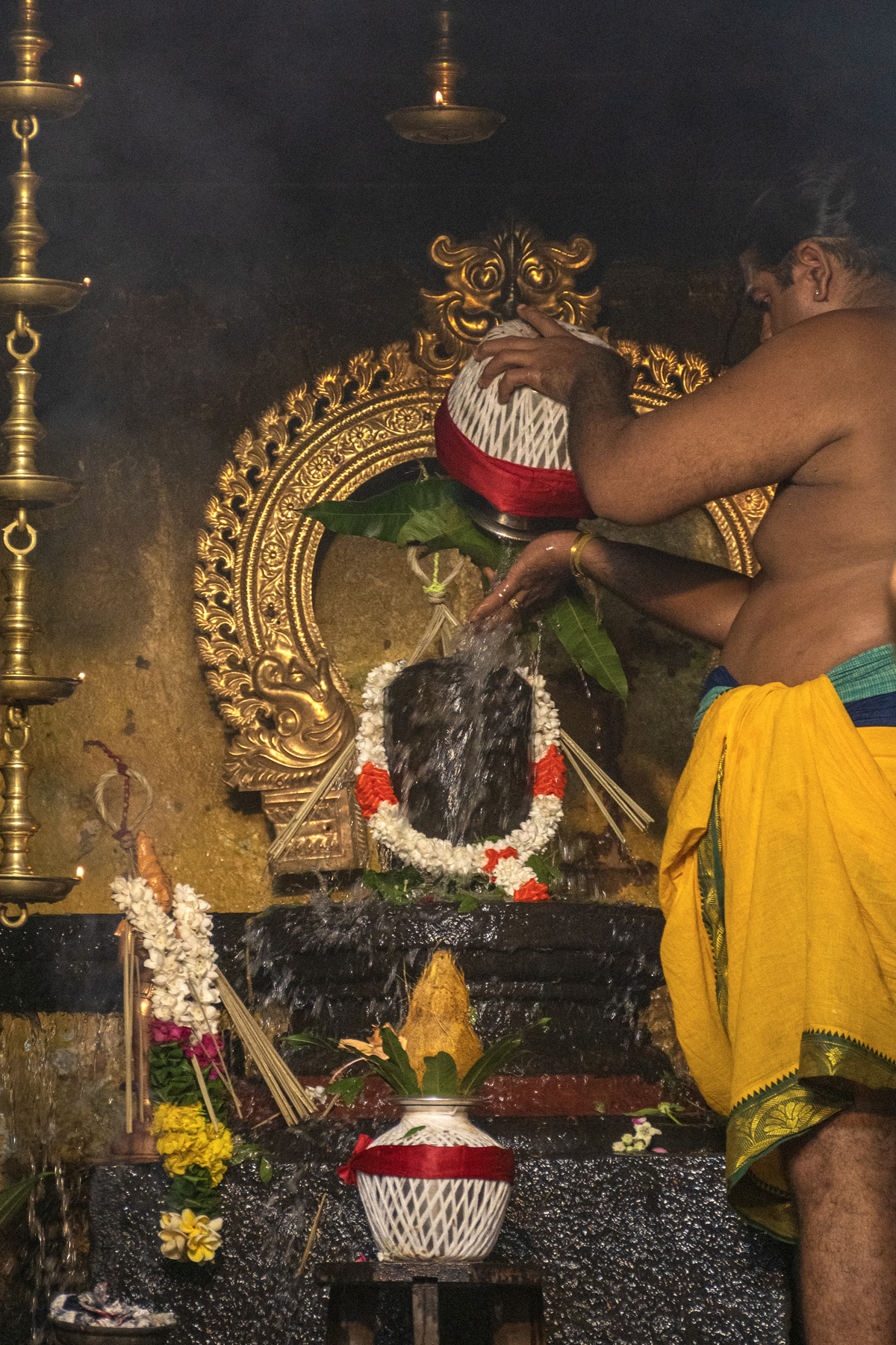 ஆலயத்தில் ஞாயிற்றுக்கிழமை (15) இரவு இடம்பெற்ற விசேட அபிசேக பூஜைகளை தொடர்ந்து, அடியார்களால் சிவலிங்கத்திற்கு பால் அபிசேகம் செய்யும் புனித கைங்கரியம் இடம்பெற்றது.