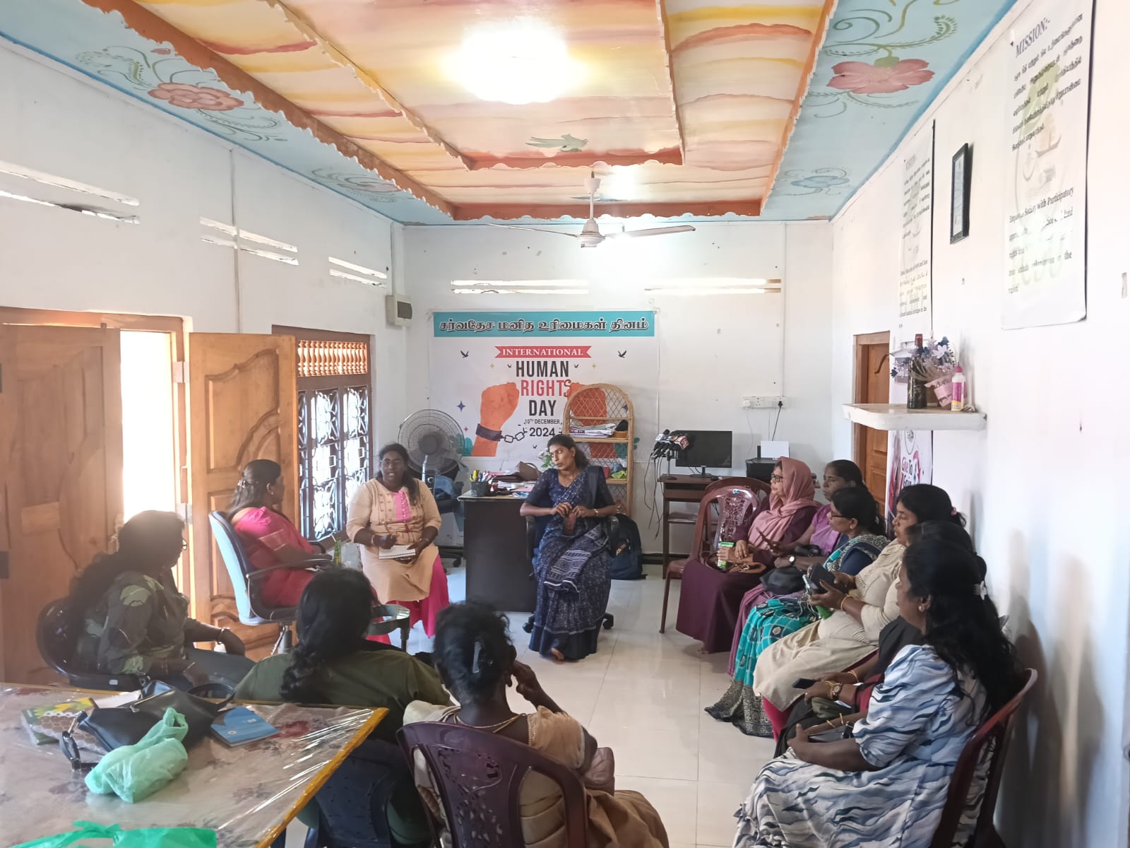 உரிமைகள் – நீதி – செயல் என்ற கருப்பொருளில் நடைபெற்ற கலந்துரையாடலில் அங்கவீனமான பெண்கள் அவர்களின் குடும்பங்கள் எதிர்கொள்ளும் சவால்கள்,மற்றும் நில ஆக்கிரமிப்பினால் பெண்கள் எதிர்கொள்ளும் சவால்கள், நுண்நிதி கடனினால் பெண்கள் எதிர்கொள்ளும் சவால்கள், அரசாங்கம் கொண்டுவரும் திட்டங்களால் பாதிக்கப்படும் பெண்கள் எதிர்ககொள்ளும் சவால்கள் தொடர்பில் கலந்துரையாடப்பட்டுள்ளது.