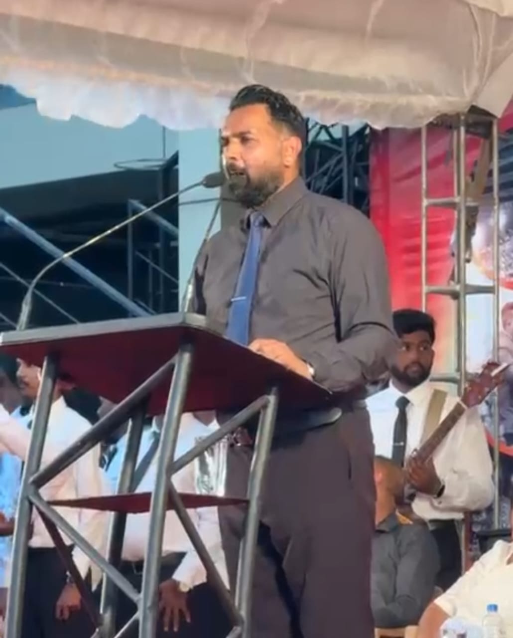கலாநிதி M.R. இராஜேந்திரம் மற்றும் Dr. C.V. இராஜேந்திரம் வழிநடத்தி, தேவ செய்தி வழங்கியதையும் மக்கள் கூடி ஆராதிப்பதையும் படத்தில் காணலாம்.