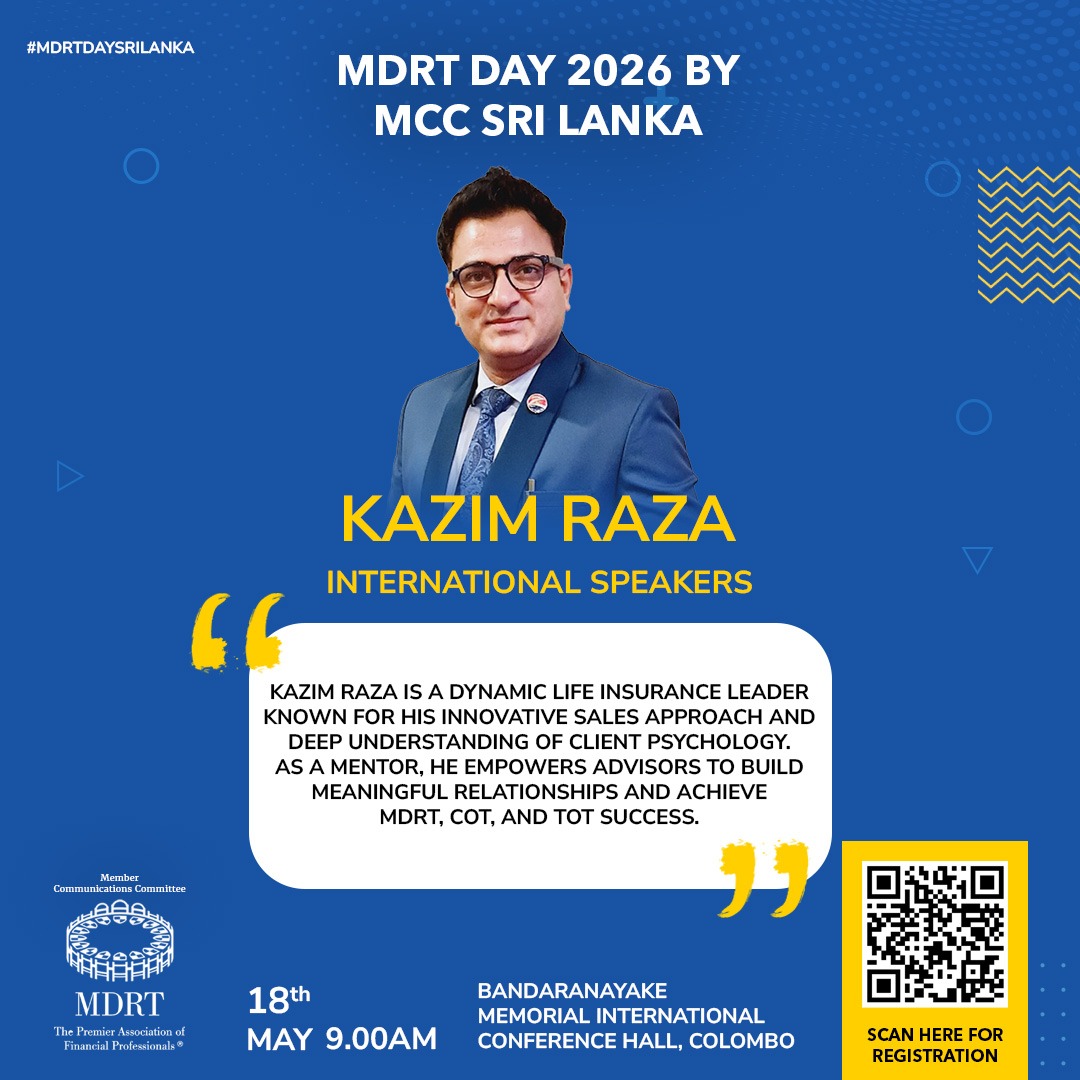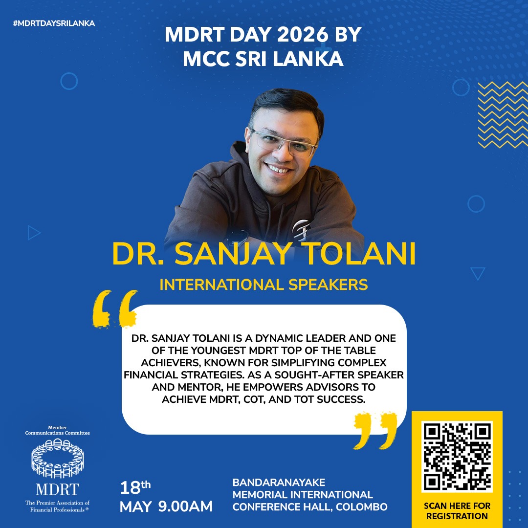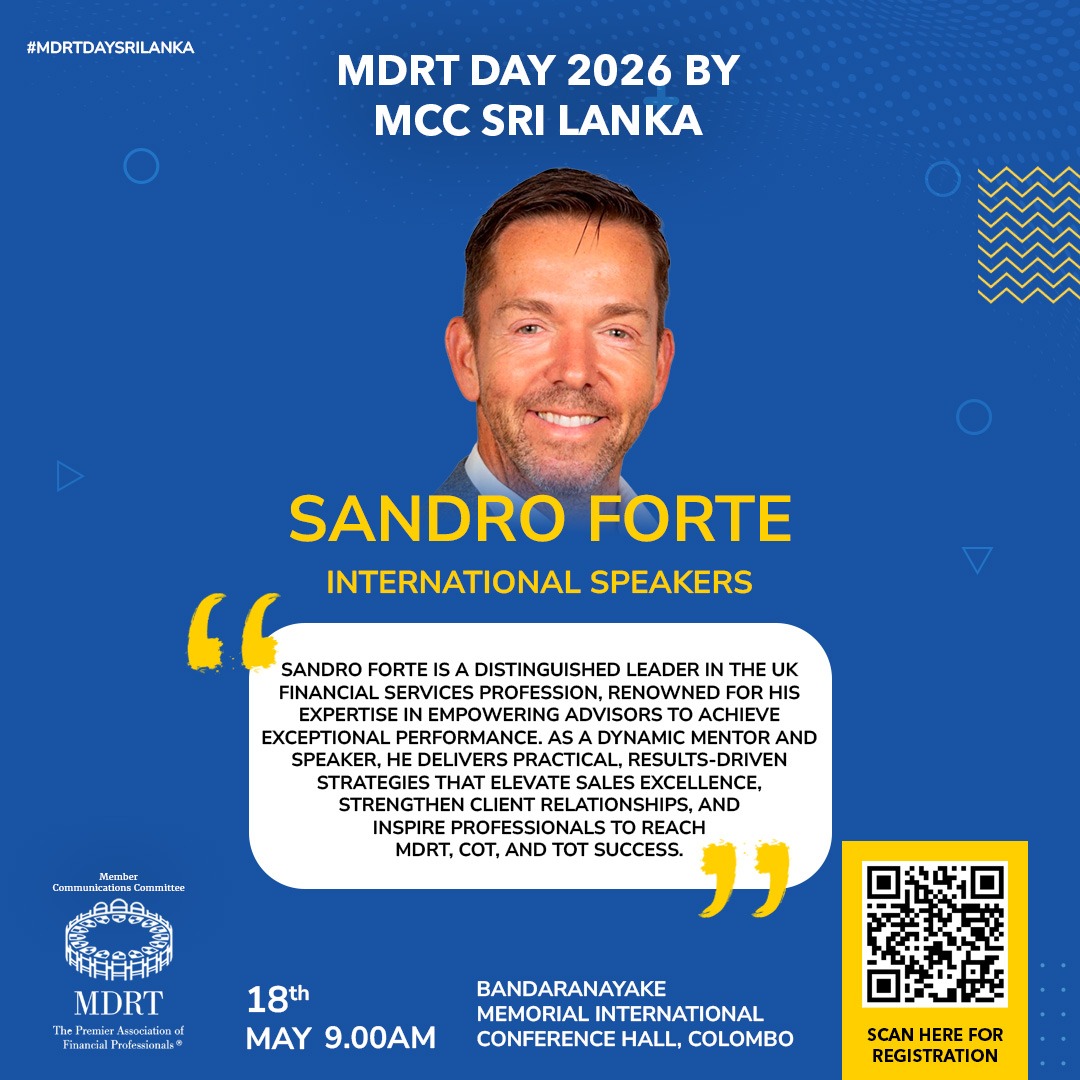 காப்புறுதி மற்றும் நிதிச் சேவைத்துறையில் உலகத்தரம் வாய்ந்த நிபுணர்களின் கூட்டமைப்பின் (Million Dollar Round Table (MDRT)) 2026 ஆம் ஆண்டுக்கான MDRT MCC Day நிகழ்வு, மே மாதம் 18 ஆம் திகதி கொழும்பிலுள்ள பண்டாரநாயக்க ஞாபகார்த்த சர்வதேச மாநாட்டு மண்டபத்தில் நடைபெறவுள்ளது.