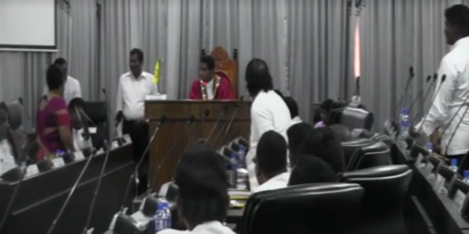 அதனால் மாநகர சபை அமர்வில் குழப்பம் ஏற்பட்டதால் சபையை 10 நிமிடங்களுக்கு முதல்வர் ஒத்திவைத்தார்.