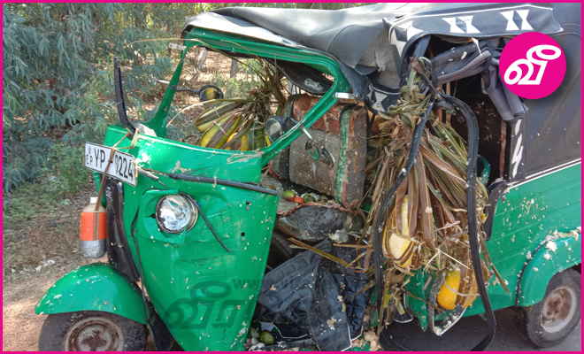 வியாபாரத்திற்காக வெள்ளரிப்பழம் ஏற்றிவந்த முச்சக்கர வண்டி மின் கம்பத்துடன் மோதி விபத்துக்குள்ளானதில் சாரதி படுகாயமடைந்துள்ளதுடன் முச்சக்கர வண்டியும் ஏற்றிவந்த பழங்களும் பலத்த சேதத்திற்குள்ளாகியுள்ளன.