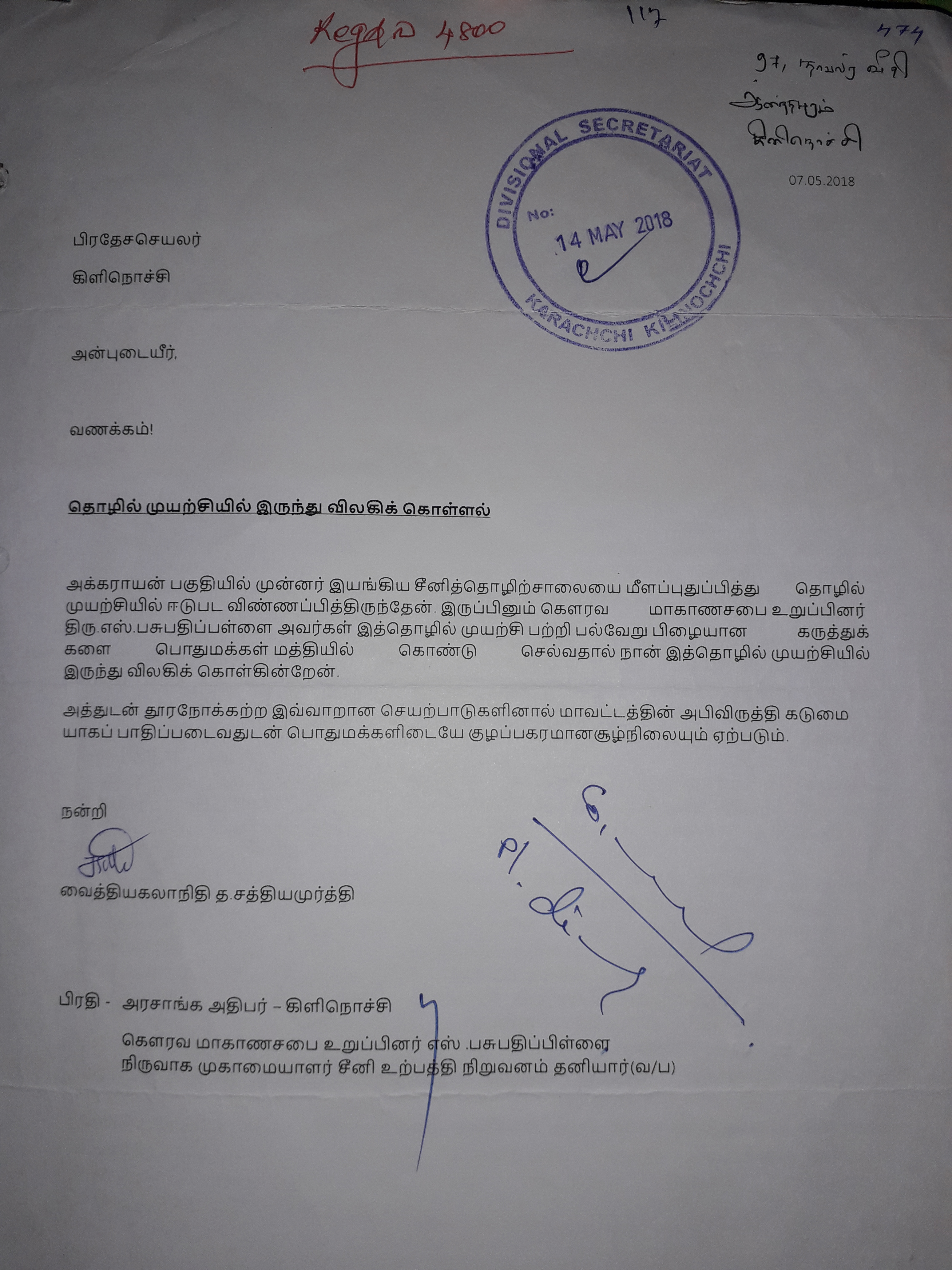எனவே இவ்விடயம் தொடர்பில் கிளிநொச்சி மாவட்ட அரச அதிபர் திருமதி றூபவதி கேதீஸ்வரன் அவர்களிடம் வினவிய போது,